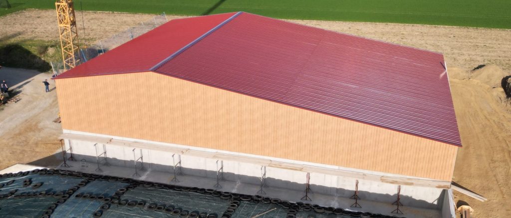 Sandwichdachpaneele 40mm, Wände Stahltrapezblech in Holzoptik mit Lichtplatten